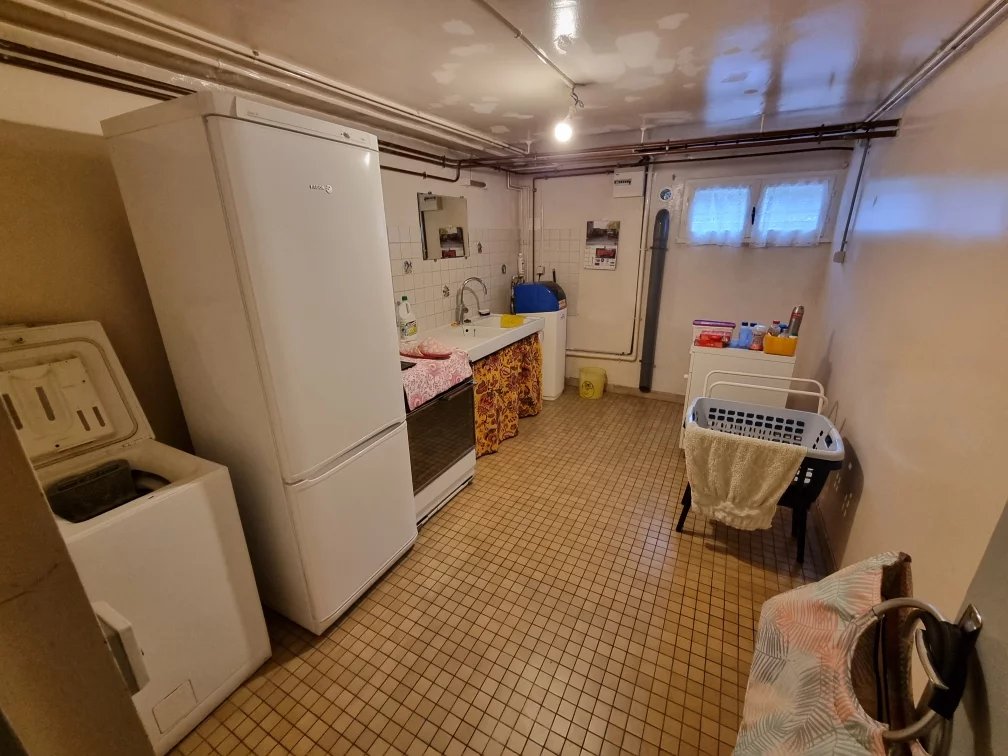 au sous-sol: buanderie douche,chaufferie (chauffage gaz de ville).cave,atelier,garage.Le tout sur un beau terrain clos de 1100 m2 environ.